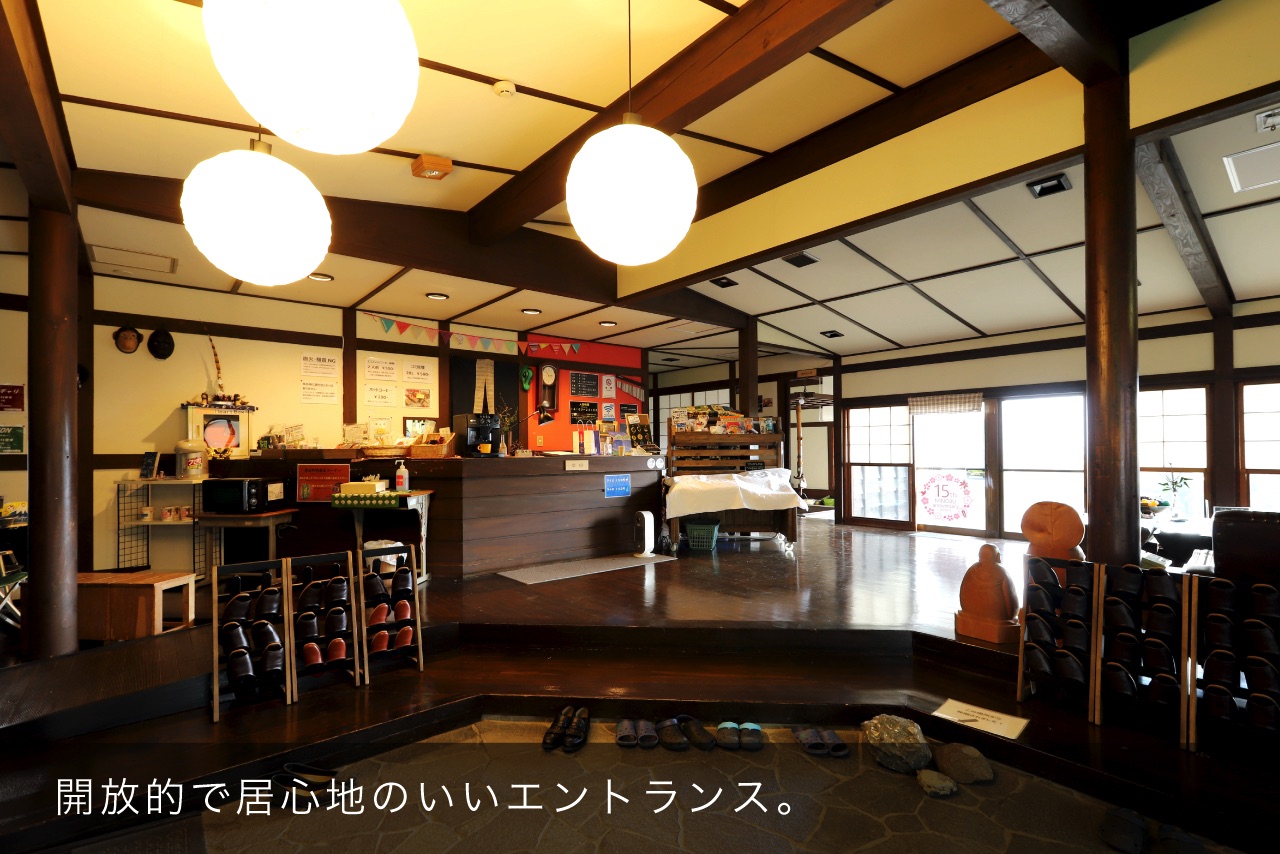 険しい山道を抜けた先に現れるこちらの施設は、新しさと懐かしさが共存する和風モダンな佇まいで、訪れた人に驚きと感動を与える。