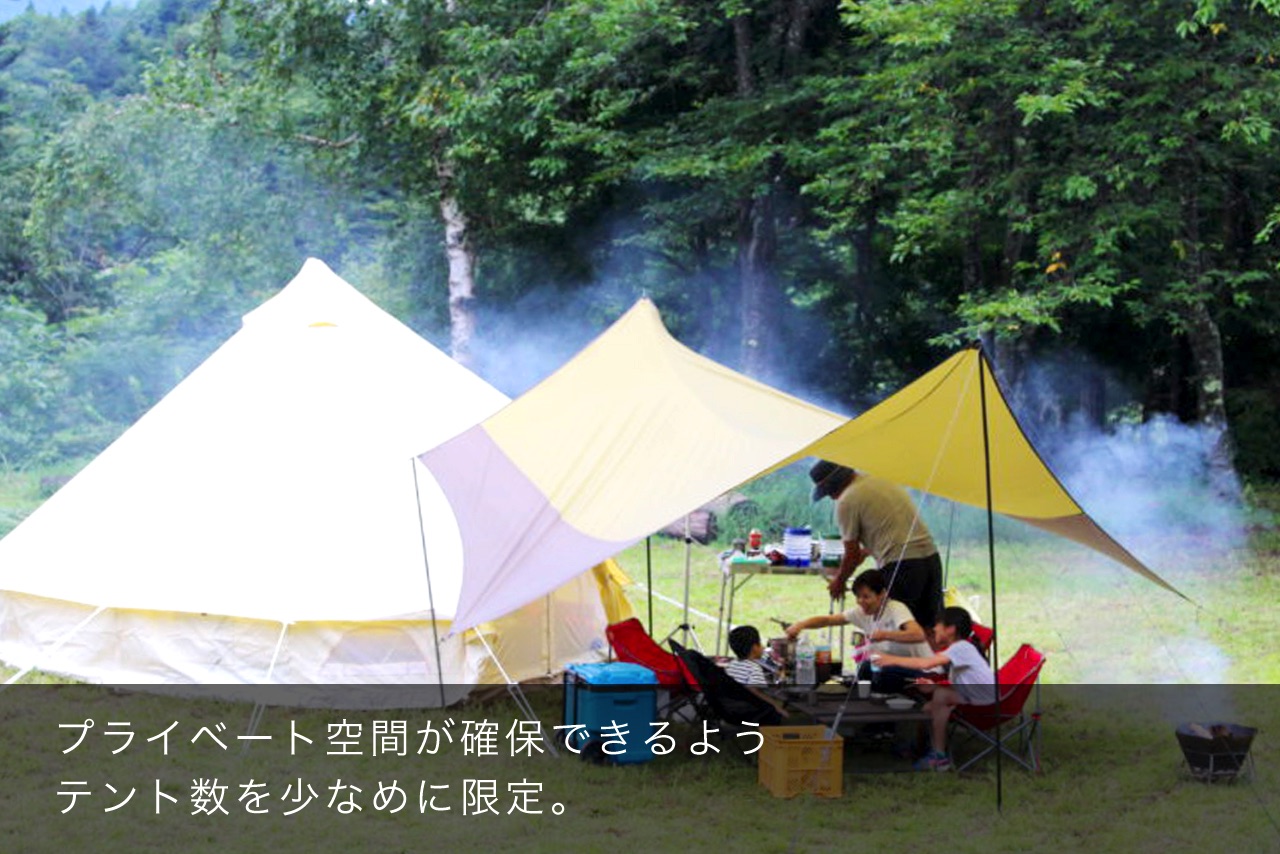 本館テントスペースと車で3分ほどの距離にあるスペースの2カ所があり、2019年オープンながら、その心地よさからすでに根強いリピーターもいるそう。
