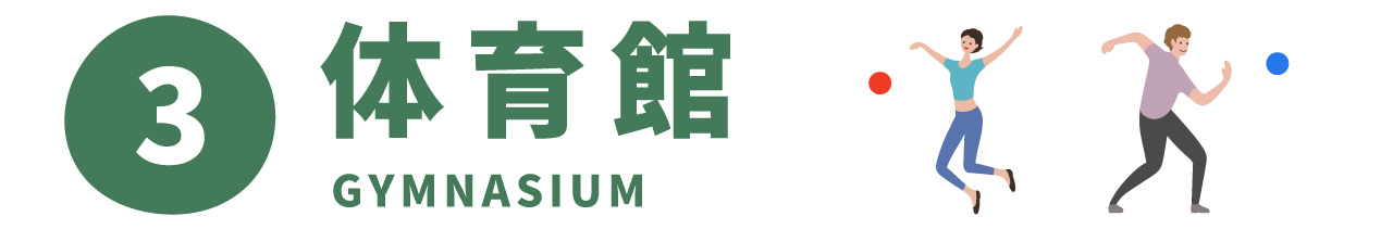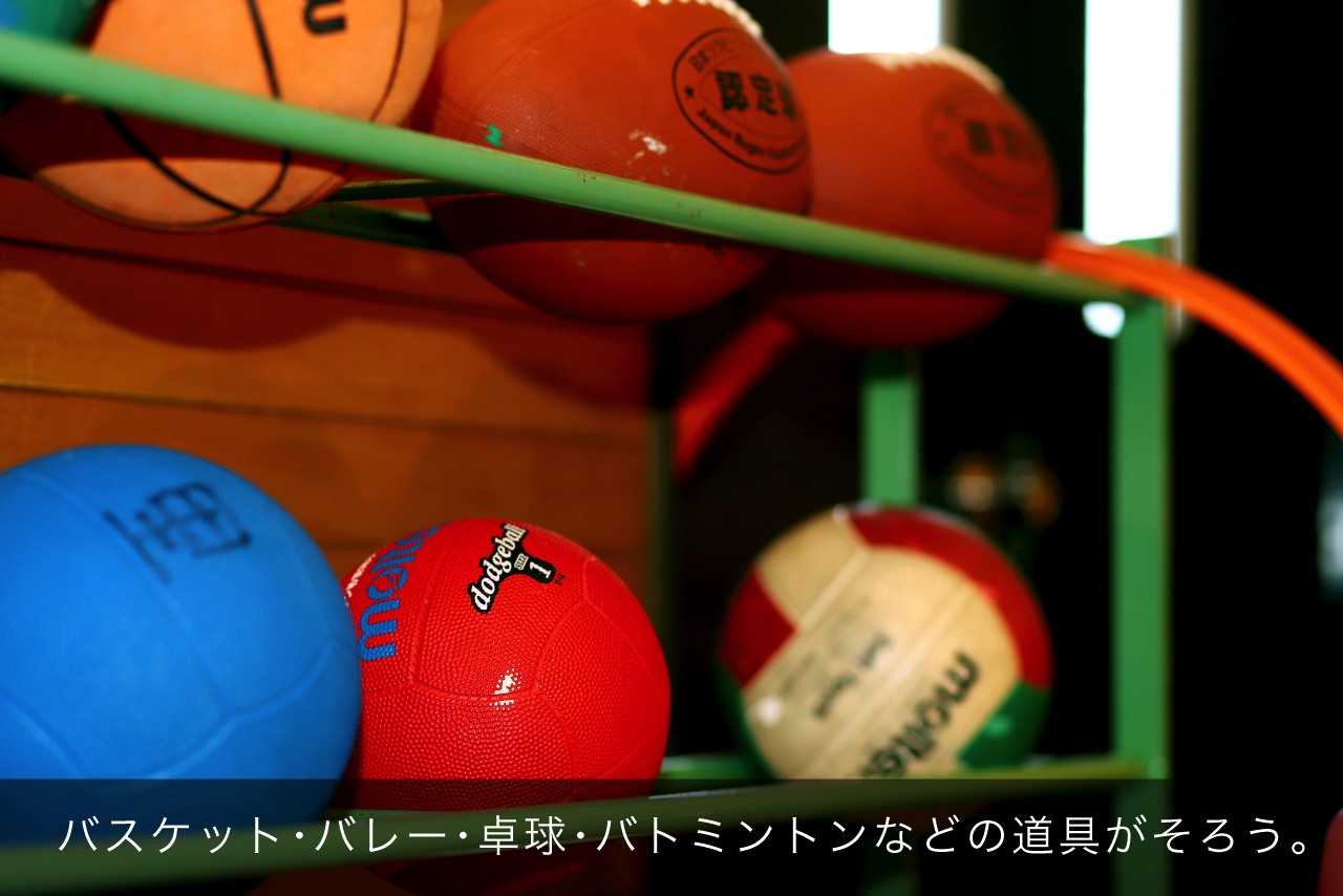 バスケットコート1面分の広さの運動エリアのほか、更衣室や給水室もあり、個人単位から利用OK。