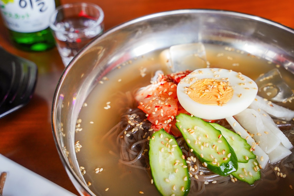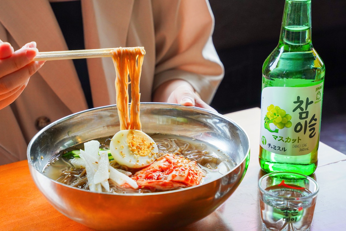 金ちゃんにきたらぜひ飲んでほしい韓国焼酎「チャミスル」。様々なフレーバーがある中でも特に、マスカット味は甘すぎず、すっきりした後味が人気なんだとか。こちらにペアリングする推し料理は「チーズたまごチム」と「ナムル盛り」の2品!豆もやし、人参、ぜんまい、ほうれん草の「ナムル盛り」は、塩とごま油でシンプルに味付け。そして、卵とチーズをたっぷり入れてスフレ状に蒸した「チーズたまごチム」は、驚くほどふわっふわ!チーズが濃厚ながらあっさりしているので、爽やかなチャミスルにぴったりだ。日本ではなかなか味わえないペアリングを試してみて。