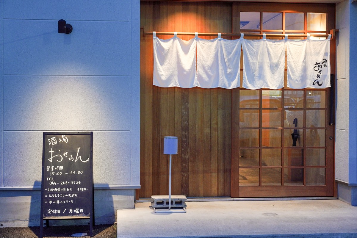 甲府駅南口から徒歩3分の場所にある「酒場おせあん」は、韮崎市の「肴や くうかい」で修業したオーナーが独立した居酒屋。落ち着いた雰囲気の店内には、L字カウンターとテーブル席があり、幅広い年齢層から人気を博する。お酒はもちろんのこと、海鮮系から揚げ物、1品料理など数多くの料理が揃う。