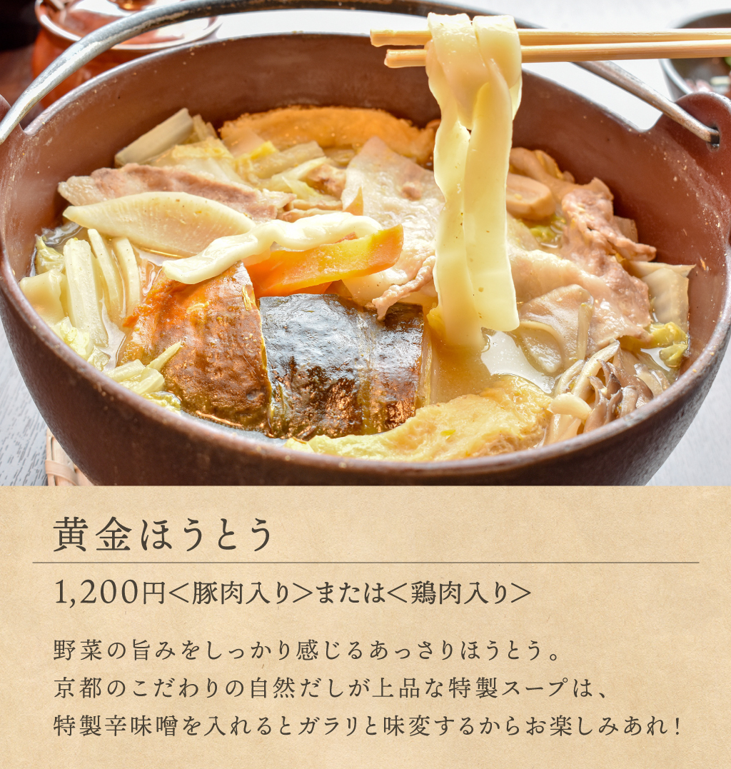 ・黄金ほうとう<豚肉入り><鶏肉入り>各1,200円