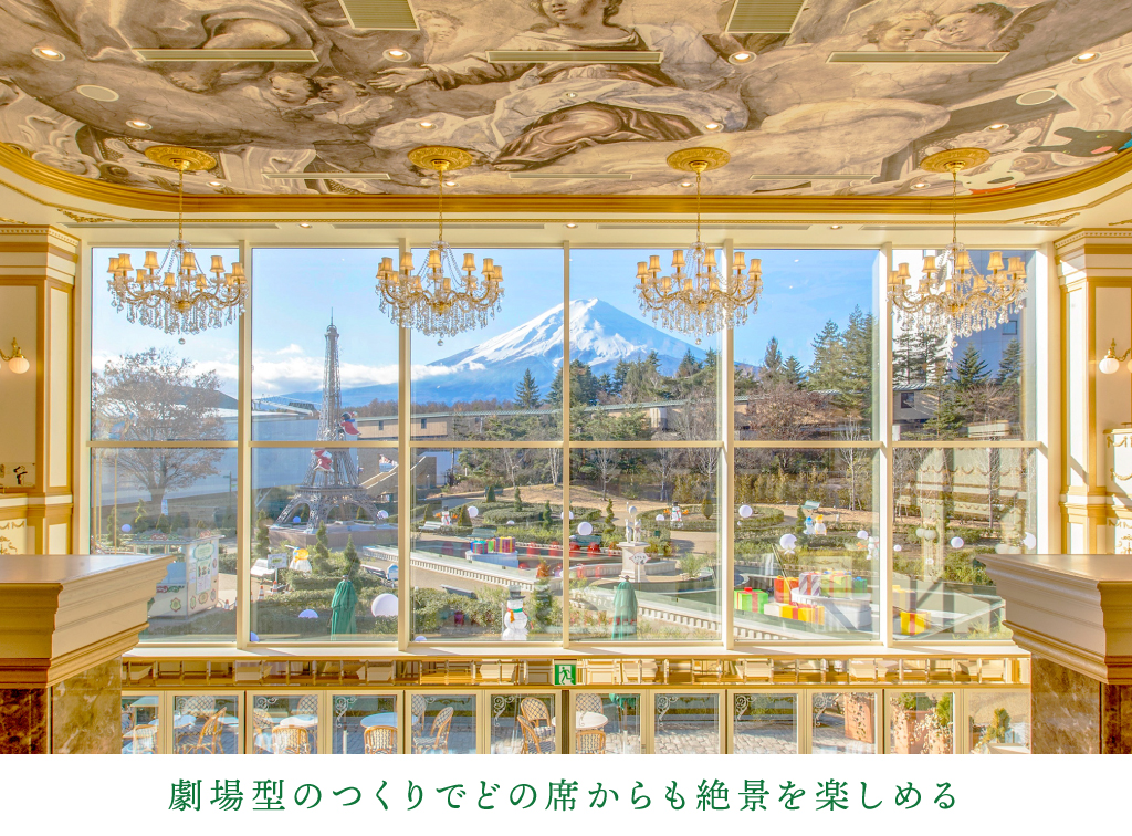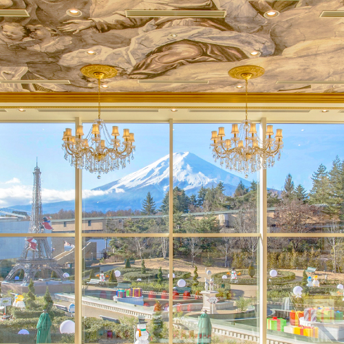 富士急ハイランド隣接リサとガスパールタウン内にある、文字通りの“夢のティーサロン”。フランスの貴婦人になったような優雅な別世界が広がる。目の前にはエッフェル塔や噴水、富士山がそびえる絶景が!スイーツから自慢の料理まで、リサガス好きはもちろん、パリの劇場のような豪華な空間で、時間を忘れて楽しめそう。
