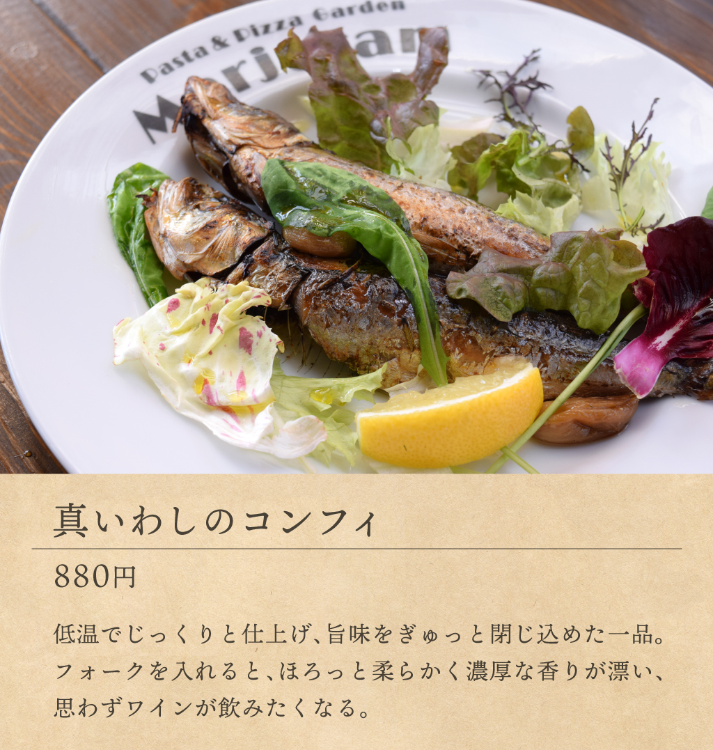 旬の食材を味わえるパスタランチコース。大人気の秘密は丸一日煮込んだ秘伝の自家製ガーリックオイル。