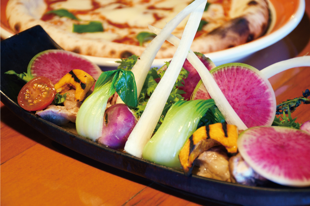 一番人気のピッツァマルゲリータは地粉をブレンドしたもちっとした生地が特徴。