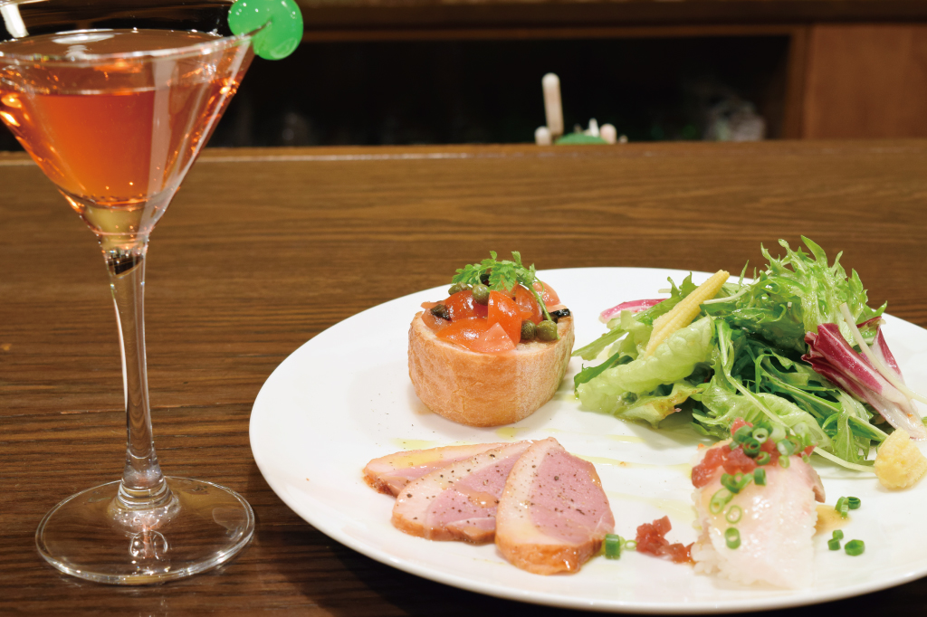 ジンベースのカクテル「さくらさくら」(1200円)とともにいかが。※すべて税別