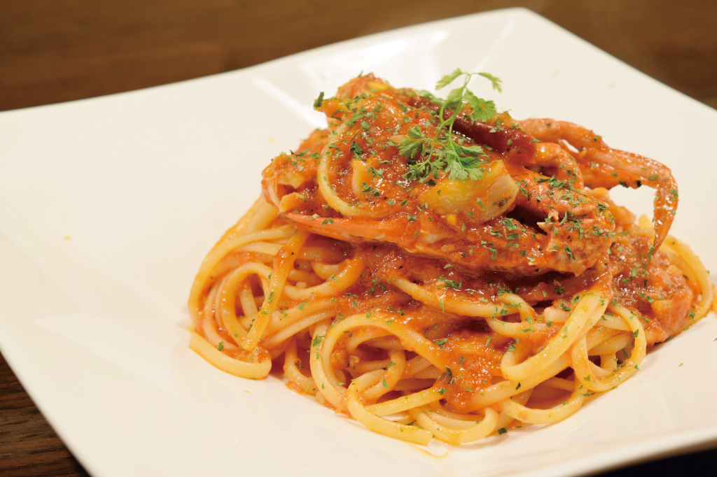 食事系が充実していて、美味しいのがここの魅力だ。モチモチしたパスタにソースが絡まった絶品、渡り蟹のトマトソースリングイネも人気の一品。
