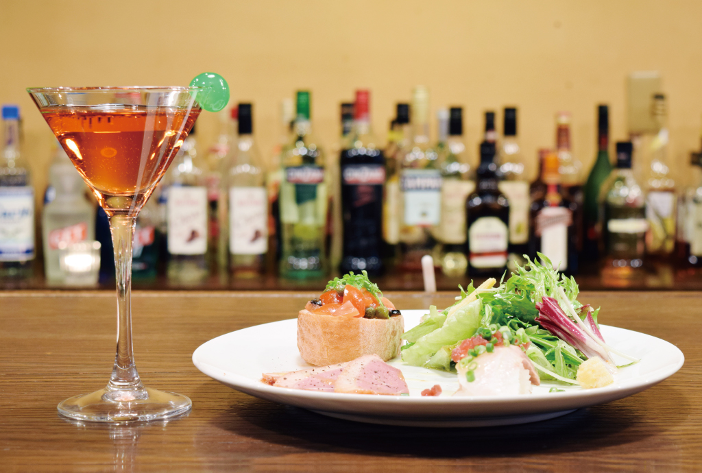大きなカウンターバーでは、好みのテイストで本格カクテルを目の前で作ってくれる。