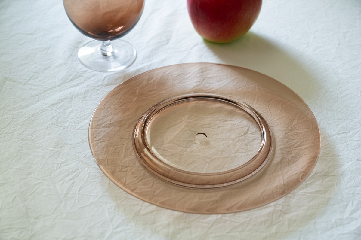 「ガラス=夏」というイメージが強いが、秋には秋の、冬には冬のガラスのよさがある。スモーキーな色合いを選べば、熱々料理をのせなくてもすっかり秋冬色の食卓に。グラノーラにヨーグルトとフルーツなんていういつもの朝食も、器を変えるだけでマンネリしがちな気持ちを変えてくれそう。器の力を借りて、少しだけ華やぐ朝を迎えてみては。
