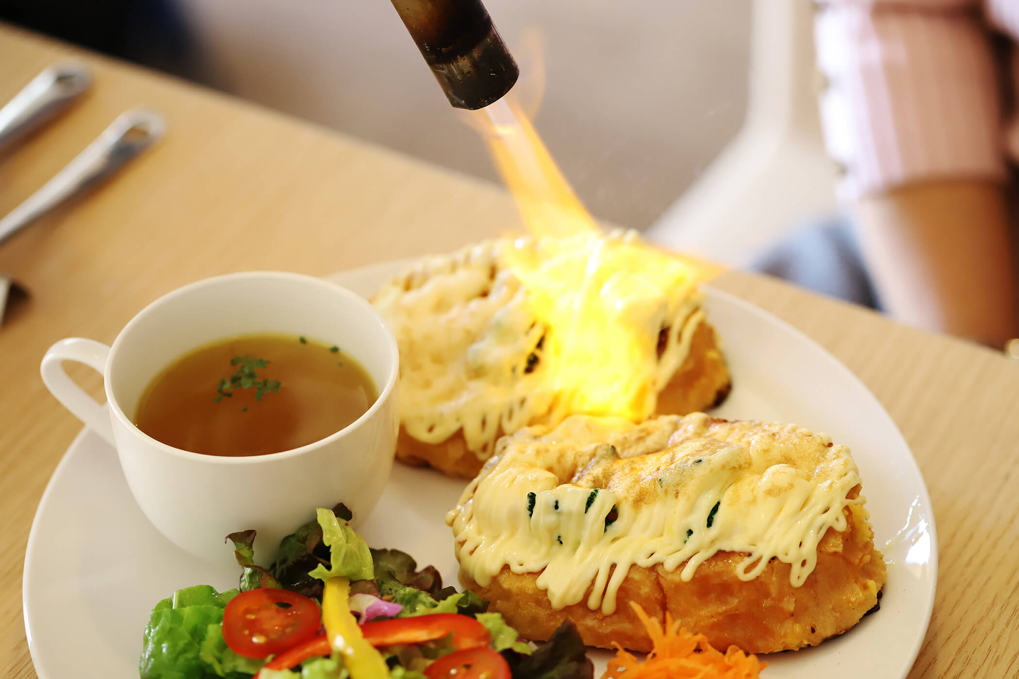 卵と牛乳、砂糖の黄金比率のアパレイユをバゲットにじゅわじゅわに染み込ませ、焦がしバターでじっくりと丁寧に焼き上げた、こだわりの逸品。