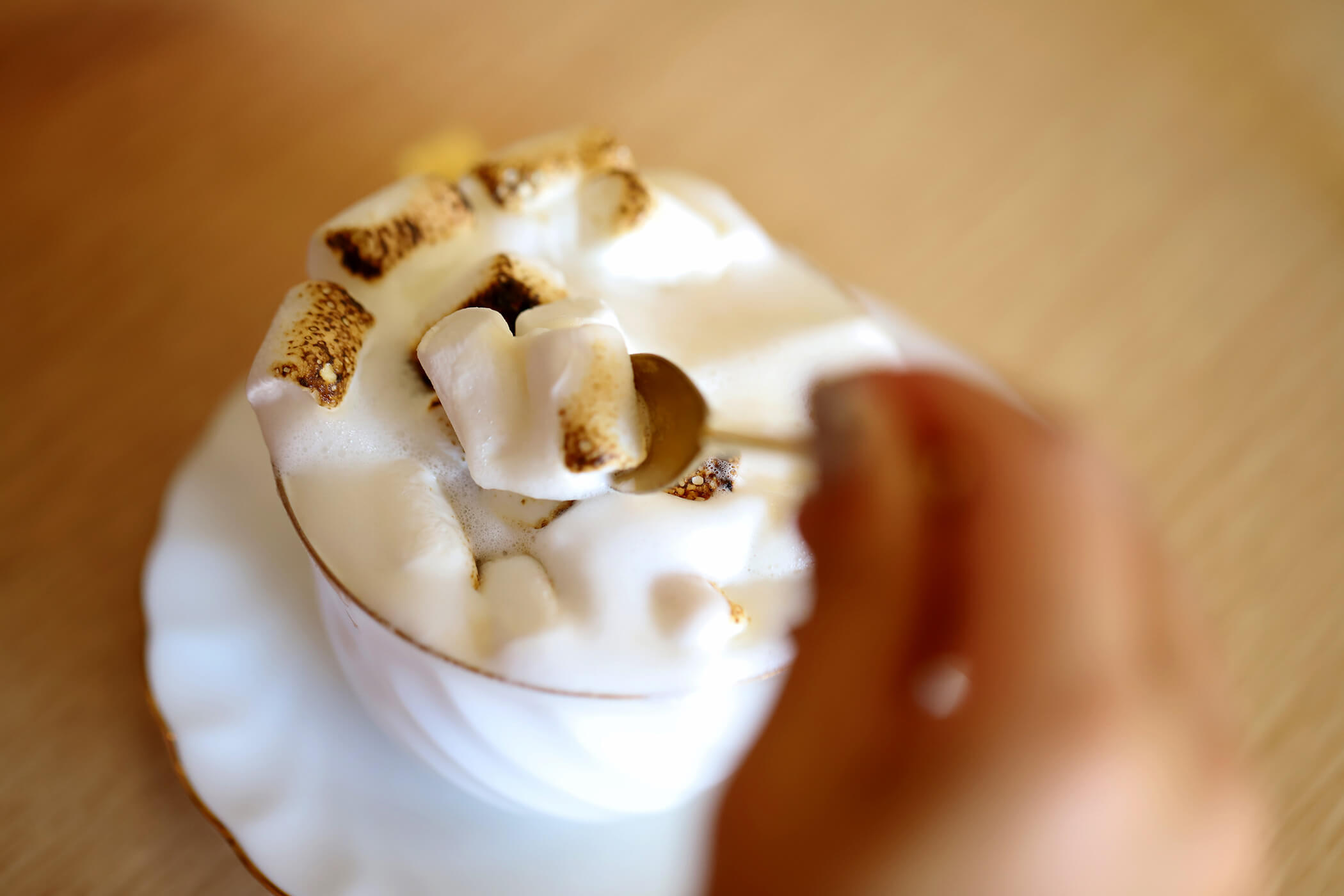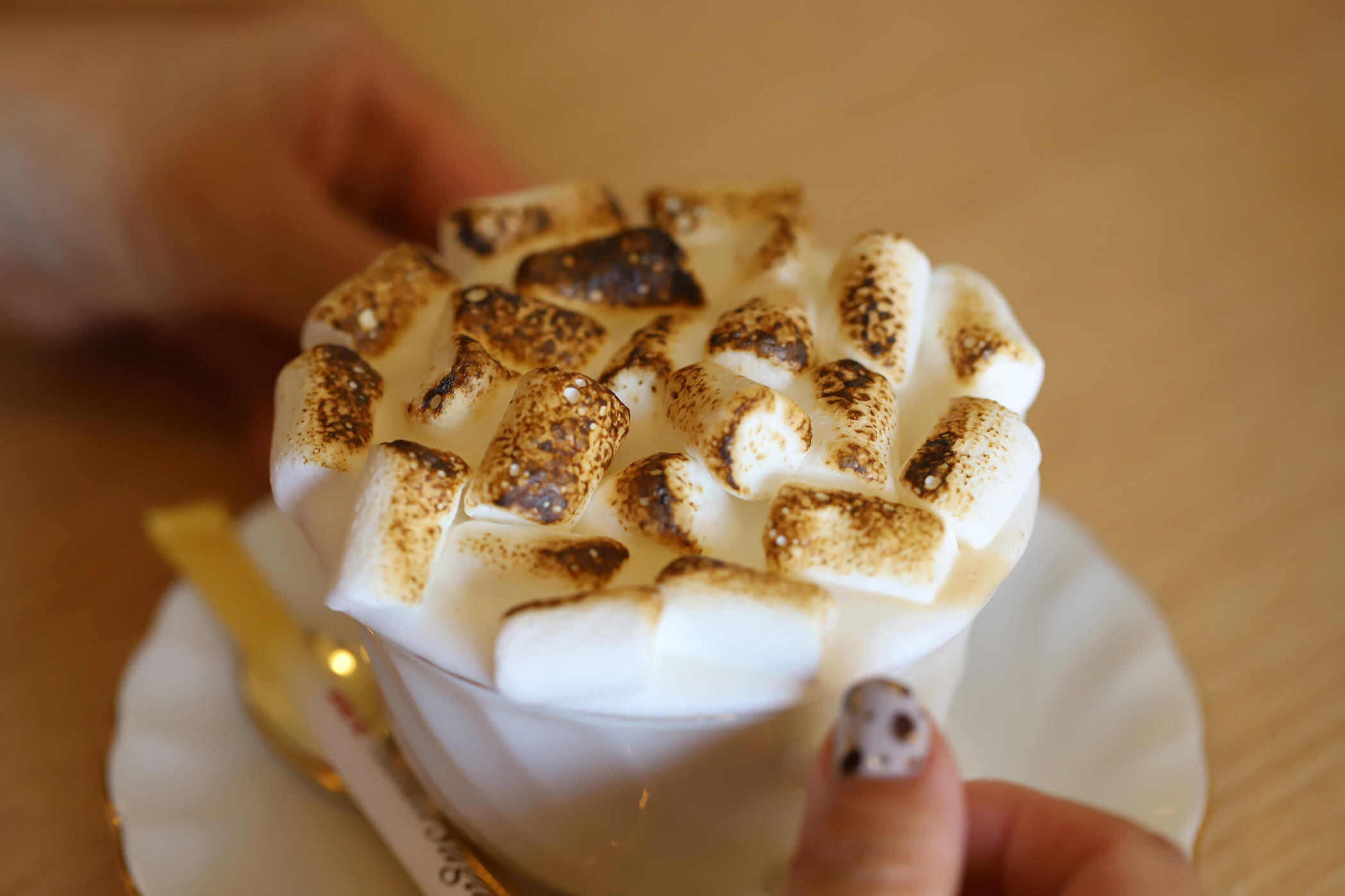 きめの細かいほわほわのミルクの泡に、のほほほんと浮かぶ焼きマシュマロ。
