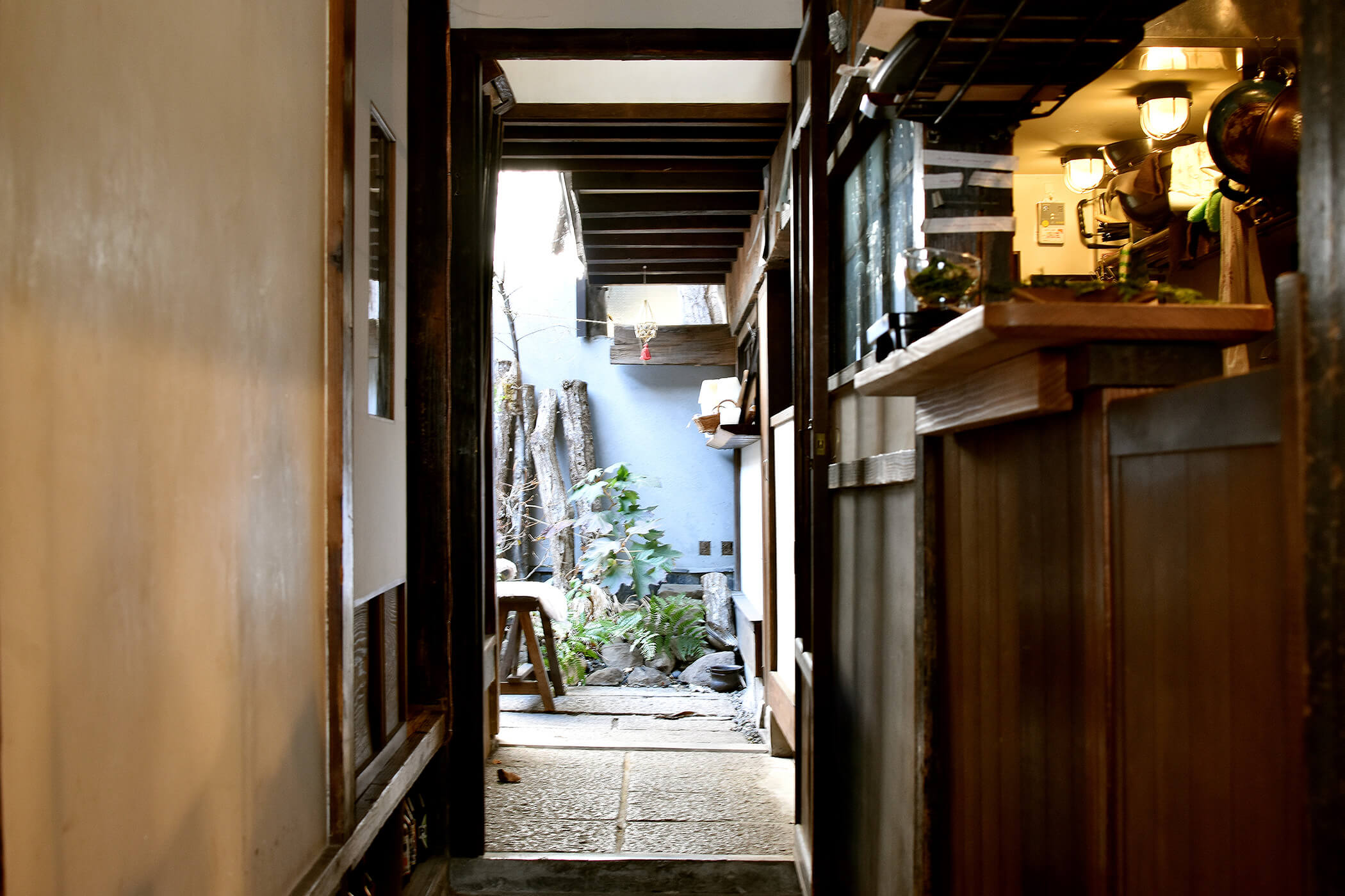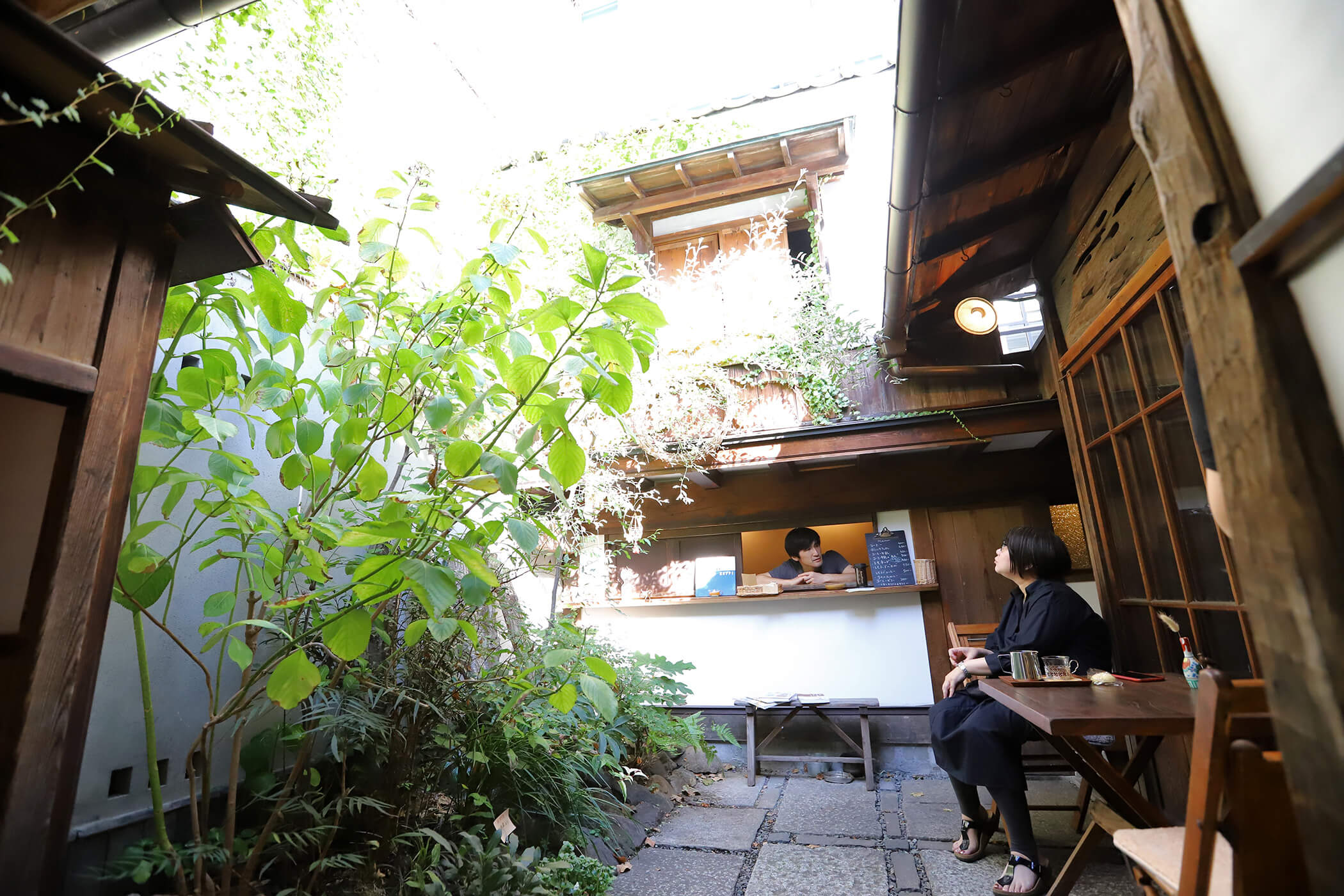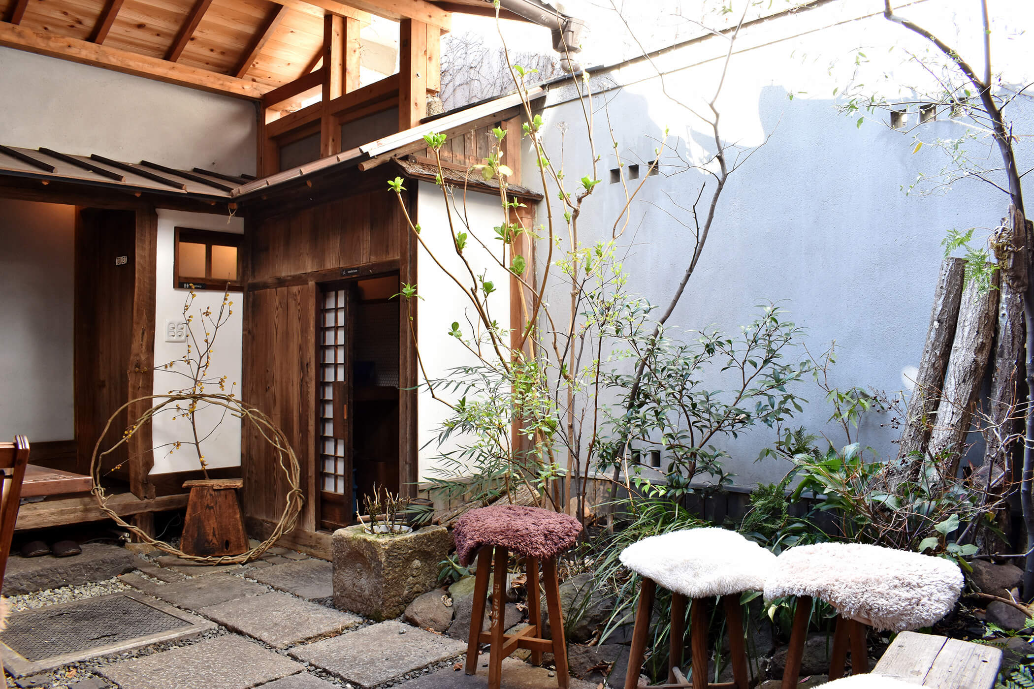 築70年以上の空き家をR/SHOEIがリノベーションした古民家レストラン「ヤマワラウ」の中で静かに営業する。