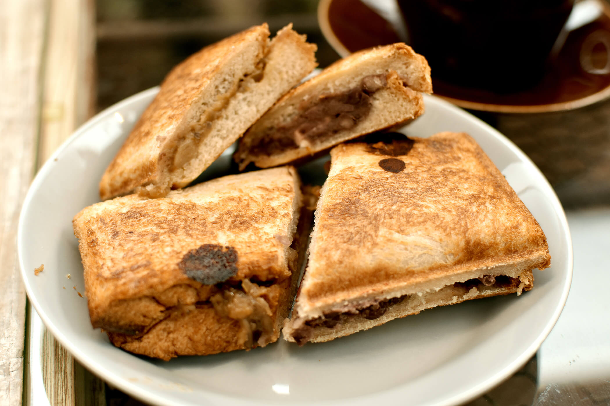まわりがカリッとプレスされたホットサンドは、ぺろりと食べられちゃう。