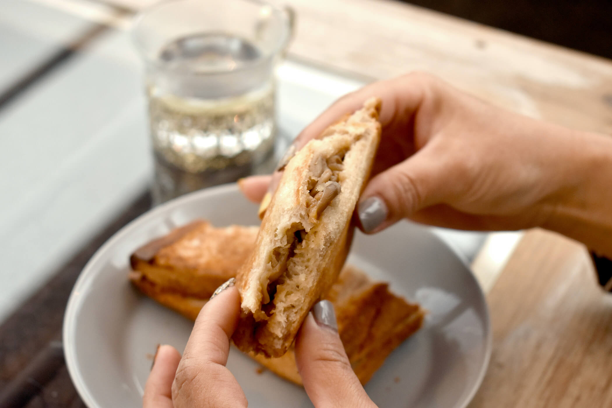 私の遅いランチを豊かに彩ってくれたのは、自家製デミグラスきのこのホットサンド!