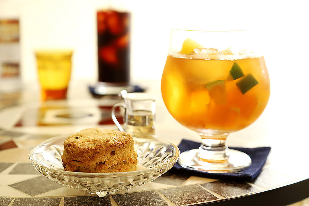 私は爽やかなライムオレンジティーとスコーン、カメラマンMはアイスコーヒーを注文。