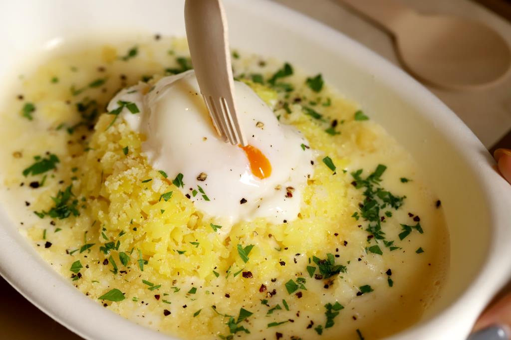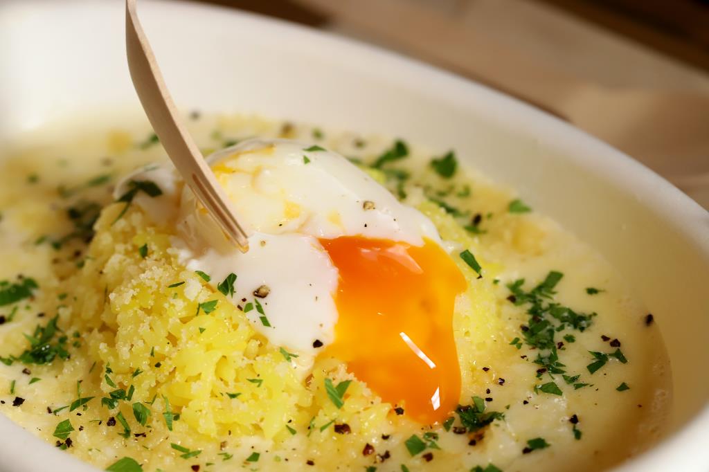 玉子、チーズ、クリーム。三者三様の濃厚さをしっかりと主張しながら、互いを尊重し合い、見事なシナジー効果が生まれている。
