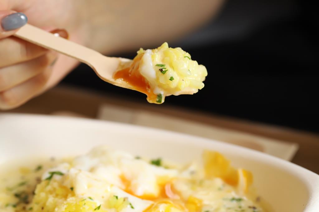 リゾットのような、シチューライスのような、何とも形容しがたい新しいライスカルボナーラ。