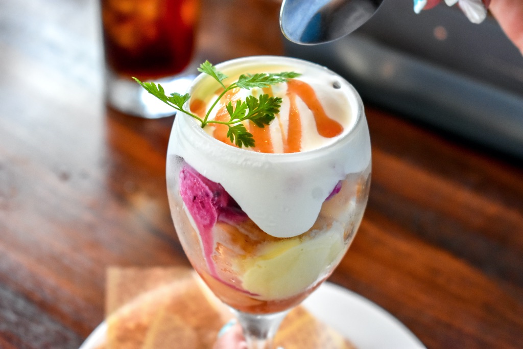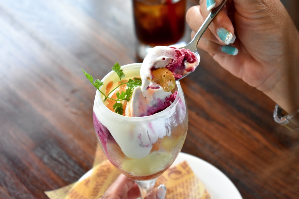 酸味と甘みのバランスに優れた、濃厚な味わいのサマーエンジェルをたっぷり使った贅沢なパフェに、思わず頬が緩む。