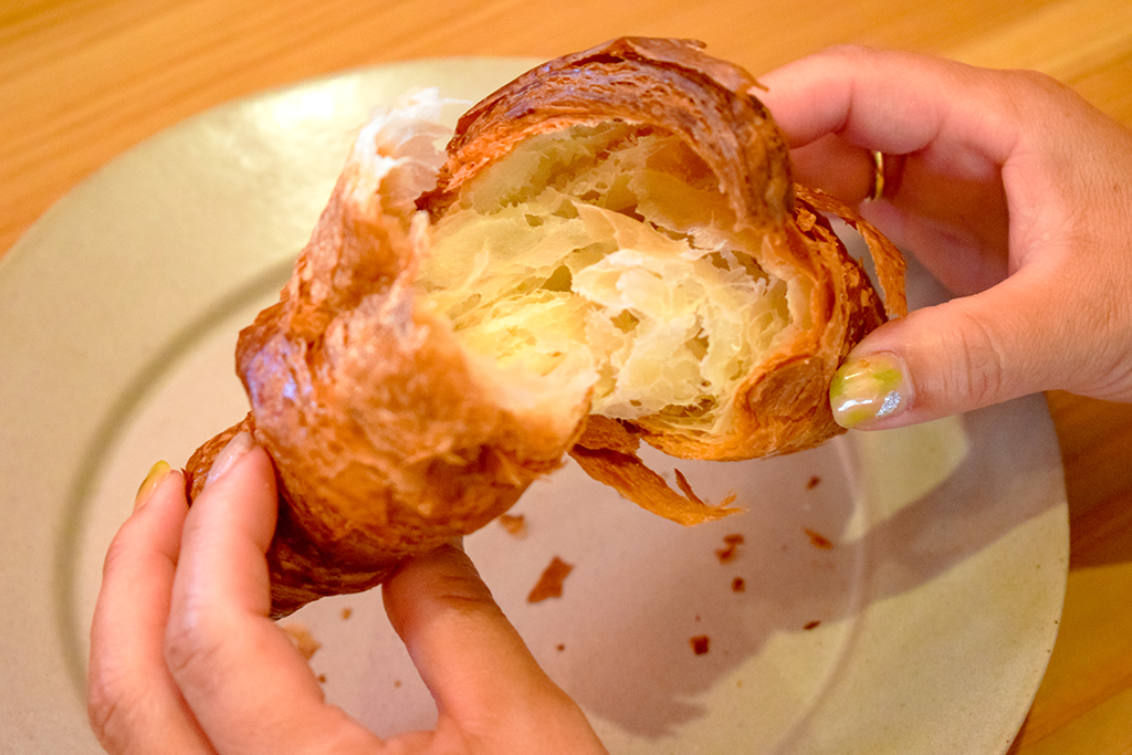 食事はもちろん、ケーキやパンまですべてシェフが手作りするというCafe Karfa(カルファ)。だからどれもこれも大量生産はできず、毎日少しずつ…がここならではの魅力なのだ。大好きなクロワッサンは、1日に焼ける量に限りがあるから、あったら絶対買っちゃう~!結構大振りなので食べ応えがあり、サクッと小気味いい音を立てて中はフランス産バターが香り、しっとり~。何層にも織り込まれた美味しさがたまらなく贅沢なのだ。