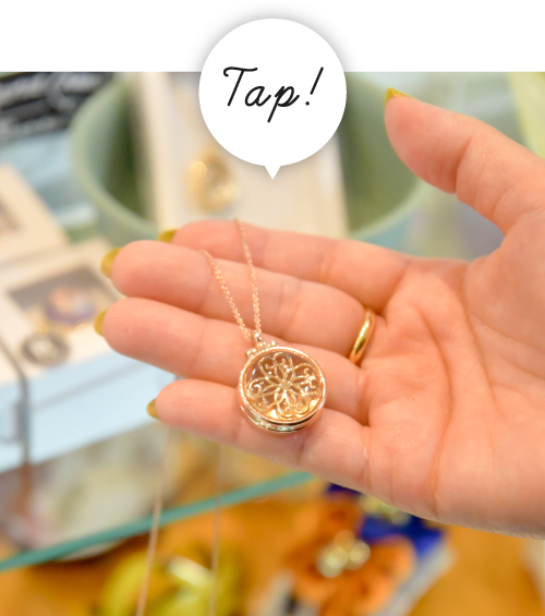 お気に入りのパーツやイメージカラーのビジューを中に入れて、オリジナルのペンダントができちゃう、ジュエリーアクアリウムのネックレス。ケースを開ければ、中身のパーツは自由に交換できて、お着がえが楽しめるのが魅力♪キラキラした輝きがとっても可愛くて、ピンクゴールドのカラーにもひとめ惚れして、はい、お買い上げね。シンプルなニットもTシャツもこれひとつでちょっぴり女子力アップさせてくれる。