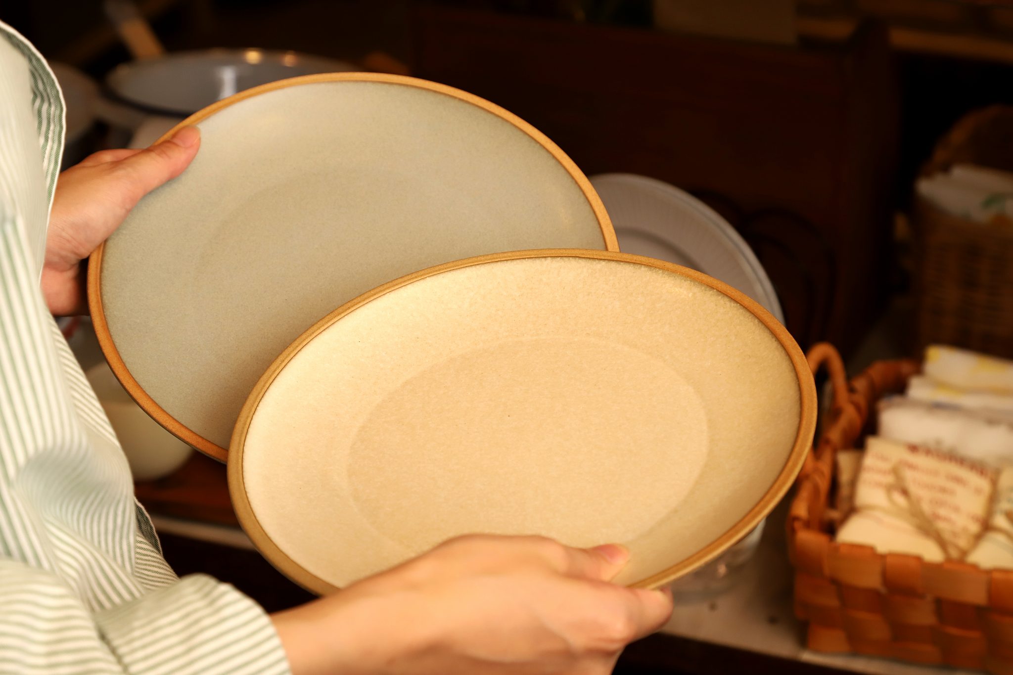 陶器で出来たシンプルな平皿。サラダとメインとココットとパンをのせたら、かわいいプレートディッシュが完成しそう!色鮮やかなナポリタンやジェノベーゼをおしゃれに高く盛り付けても上品。素敵なお皿ってだけで、さもない料理が格上げされるから、これは即決買い!
