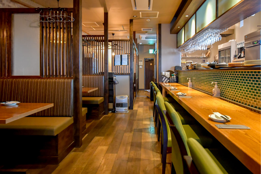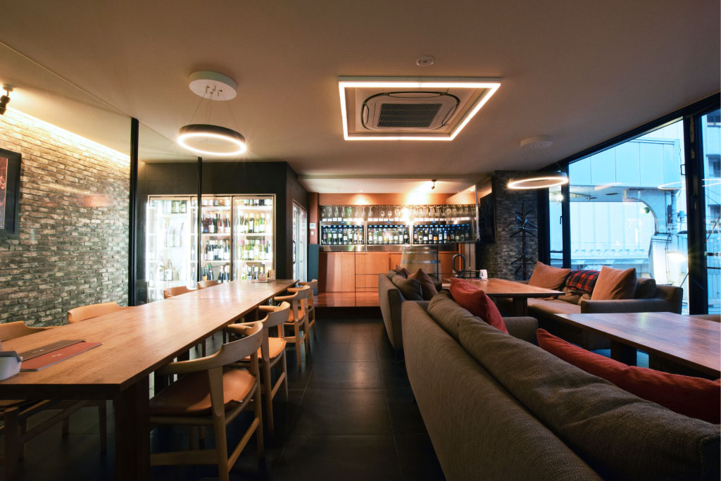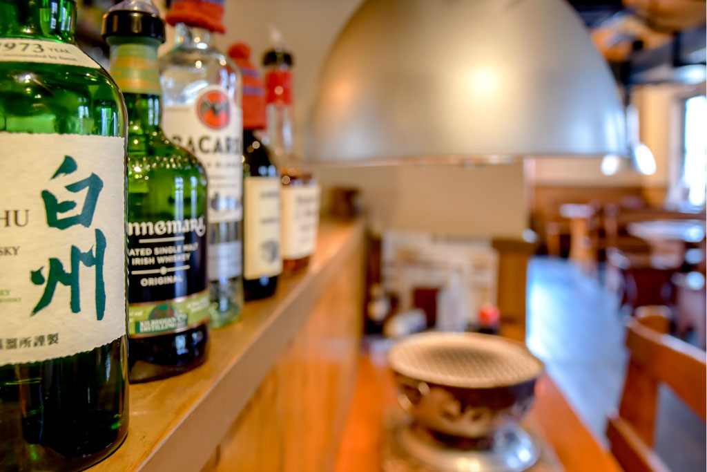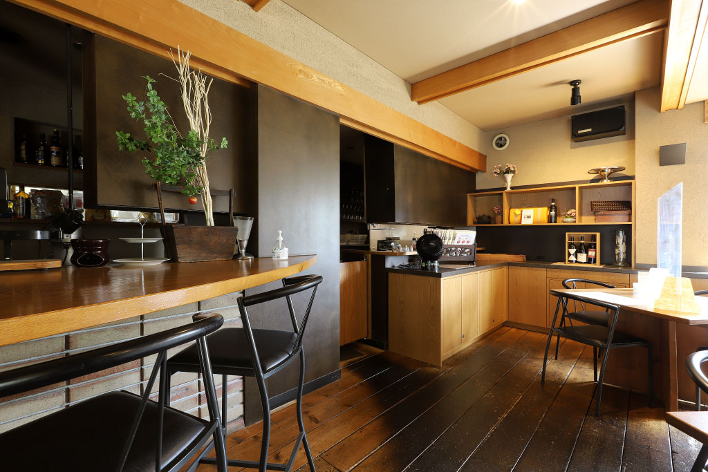 甲府駅からほど近く、平和通り沿いに佇む人気店。店内はダイニングバーのようなおしゃれな雰囲気で、落ち着いた大人のための空間が広がる。広めのカウンター席やゆったりとしたテーブル席、奥にはお座敷もあり。店名の通り、炭を使った肉や旬の野菜料理を県産ワインや日本酒とともに楽しめる。