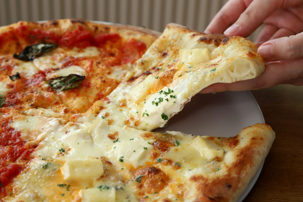 1,320円 直径約30cmのもっちり食感のナポリ風生地に、トマトの旨味とフレッシュバジルの香りがあと引く『マルゲリータ』と、4種のチーズが複雑なコクを生み出す『クワトロ』の2種が楽しめる贅沢なひと品。デザートには、5月上旬まで楽しめるいちごのタルト(550円)をはじめ、旬のフルーツを使ったスイーツがおすすめ。シェフの技術とセンスにより果実の魅力が見事に引き出されたスイーツの数々に、食後の余韻がさらに豊かになるはず。