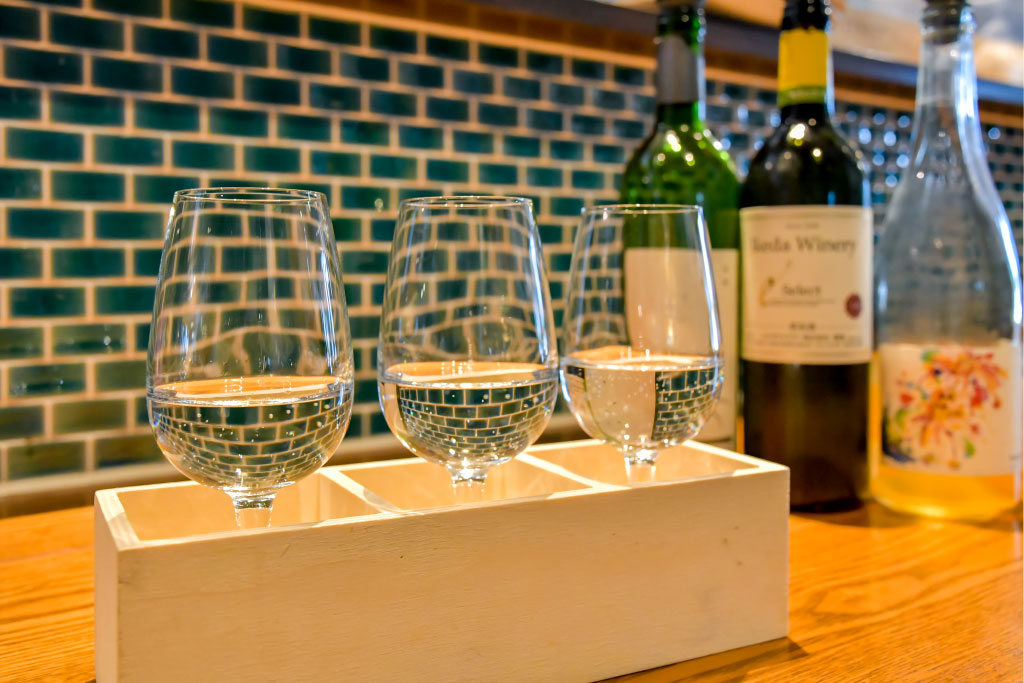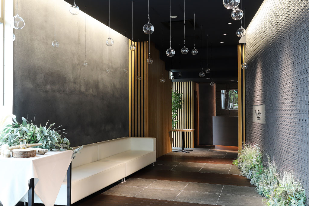 100年以上の歴史を誇るワイナリーSADOYAが運営するフレンチレストランREAL D’OR。少人数ウエディングの会場にもなるため、入口から席までのアプローチも華やかで、これからの食事に期待が高まる。結婚記念日やバースデーなどの記念日に利用する人が多いが、駅近な立地のためランチにワインを楽しむ人も。