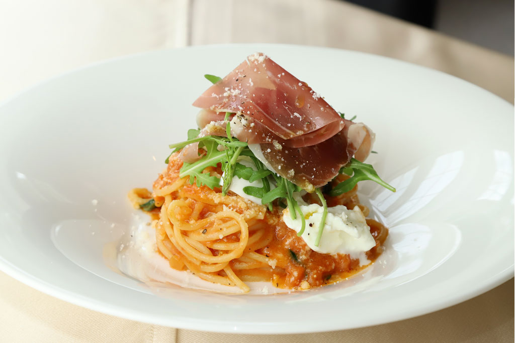 甲府駅北口から徒歩3分、甲府市歴史公園に隣接するレストラン。駅近の都市部にありながら、公園の木々の緑が映える心地よい空間で本格イタリアンが味わえるとあって、連日女性客を中心に多くの人で賑わう人気店だ。結婚パーティなど祝宴の場として選ばれることも多いこちらの店では、美味さはもちろんのこと、要望に応じてシチュエーションに合うメニューを提供してくれる。