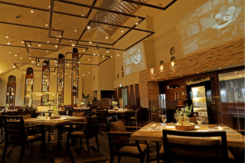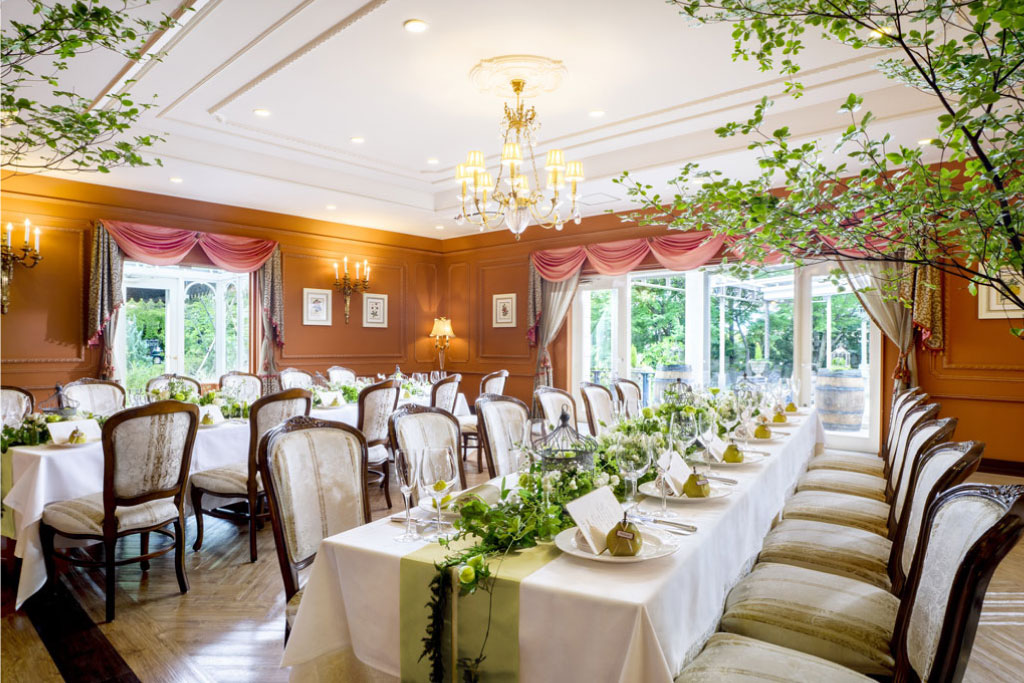 美しいバラが咲き誇るイングリッシュガーデンを眺めながら、豪華なお城のような邸宅レストランで本格イタリアンを堪能できる。広々と開放的な空間はウェディングや記念日レストランとしても定評があり、抜群のロケーションでディナーはもちろん、ランチやティータイムも人気が高い。