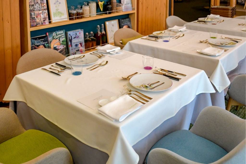 八ヶ岳高原の中村農場の鶏肉や卵をふんだんに使った、美しい本格フレンチが楽しめる。レストランウエディングでも人気の店内は開放感に溢れ、スガハラガラスのプレートを始めテーブルセッティングも華やか。五感を刺激する絶品料理と高いホスピタリティに大満足間違いナシ。