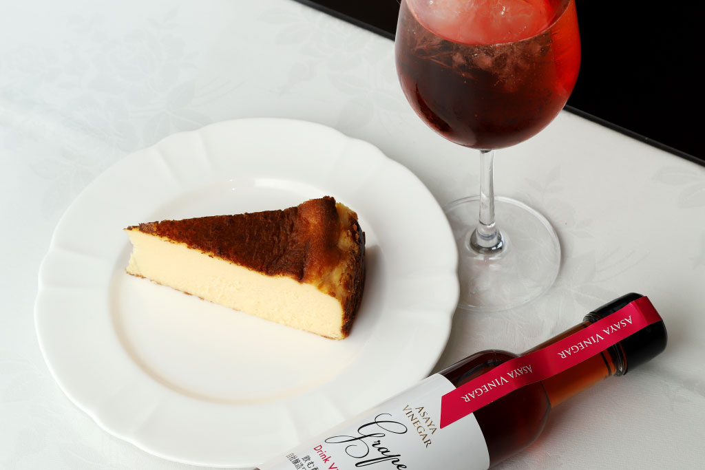 さくらビネガーソーダ…580円 じっくりと焼き上げた信玄豚はとても柔らかく、しっとりとした舌触り。お肉の甘みがしっかりと感じられるため、それを引き出すために味付けは塩コショウのみ。付け合わせの野菜も素材の味わいを活かした調理法で、甘みが際立つニンジンやジャガイモ、ジューシーなナスもメインと同じくらい満足感がある。デザートのバスクチーズは濃厚だけど甘さ控えめで、大人のチーズケーキ。しゅわしゅわ炭酸のさくらビネガーで、食後はさっぱりと。