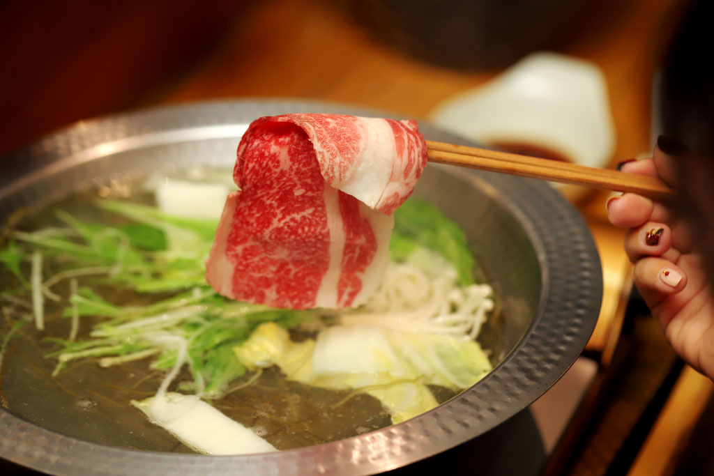 2,748円/1人 華やかで豪華な見た目に圧巻。弧を描くように丁寧に並べられたお肉と、富士山の麓で育った富士ヶ嶺ポークや富士桜ポーク、厳選A-5ランクの宮崎県産黒毛和牛のしゃぶしゃぶは、別格の美味しさ。あっさりとして上品な昆布出汁にくぐらせ、ポン酢でいただけば口の中で甘みと旨味が絡みあう。トッピングのトマトやラー油を混ぜて味変も楽しもう。