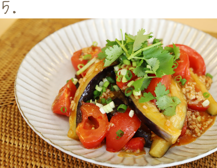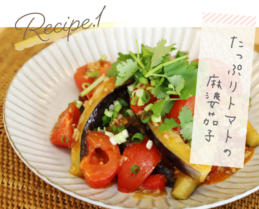 皮が薄くて柔らかな肉質の中玉トマト。トマトの赤い成分「リコピン」は油に溶けやすい性質で、油と一緒に食べると体内への吸収率がアップ!いつもの麻婆茄子にトマトをプラスすると、さっぱりした酸味で食欲がすすむ一品に。