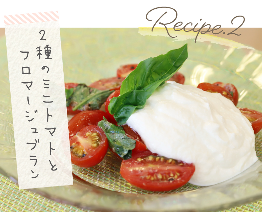 ラグビーボールのような形のアイコは果肉の厚さが特徴的。小さく丸いラブリーさくらはフルーツのような甘みがあり、トマトが苦手な方にも◎簡単に作れる自家製フロマージュを絡めて、2つのミニトマトの味比べをしてみて。