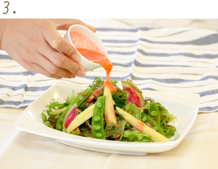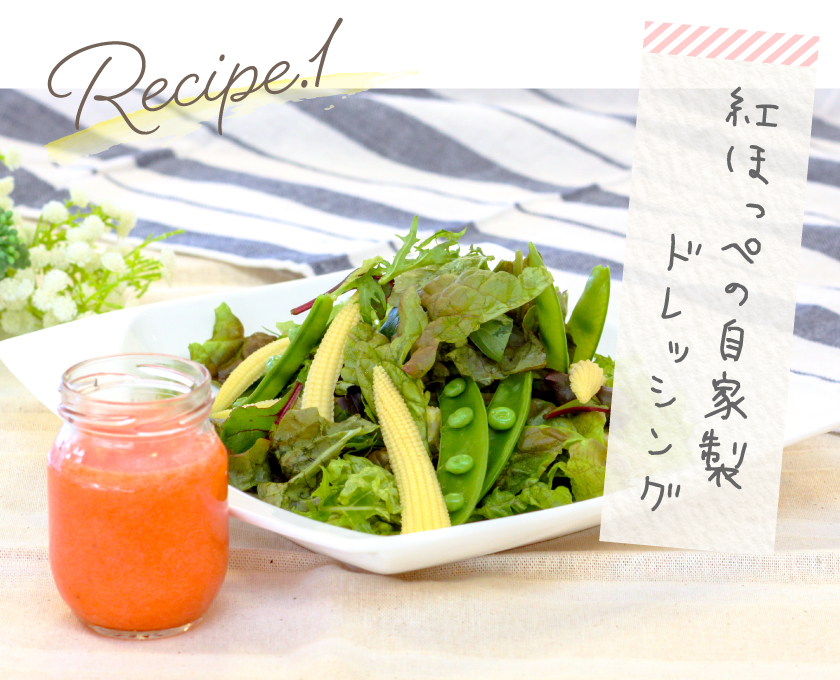 デザートとして食べるイメージが強いいちごですが、実はサラダにもぴったり!中の果肉まで赤い紅ほっぺはドレッシングやジャムにすると鮮やかな色の仕上がりに。紅ほっぺの香りと程よい酸味がフレッシュな野菜と相性抜群。