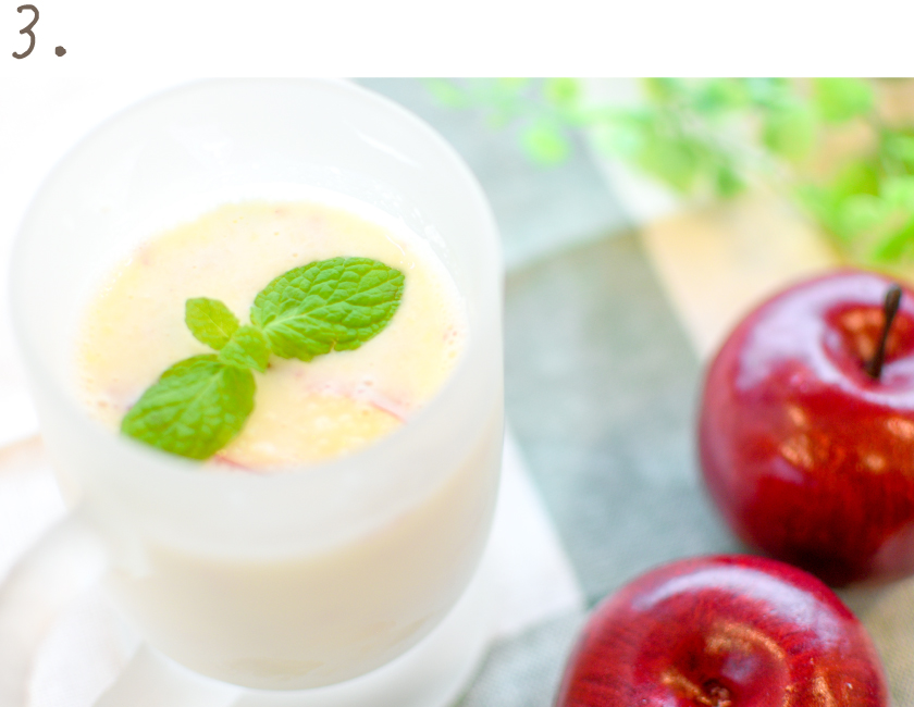 生乳100%で作られた「飲むヨーグルト」を使ったラッシーレシピ。脱脂粉乳やミックスパウダーを一切使わず製法したヨーグルトはミルキーで濃厚な味。りんごのシャリシャリした食感が楽しく、忙しい朝のごはん代わりにも♪