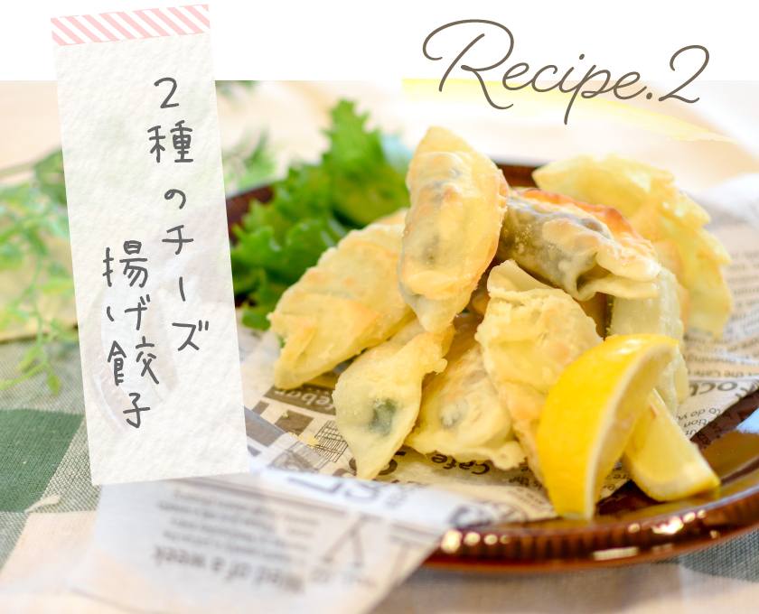 新鮮な牛乳を生かして作った「生カマンベール」と「裂けるチーズ」は原料から全て手作り。餃子の中からチーズがとろ~り溶け出し、梅や味噌の塩気が癖になる。お酒のおつまみにも◎