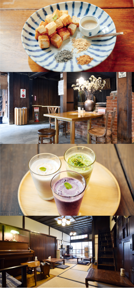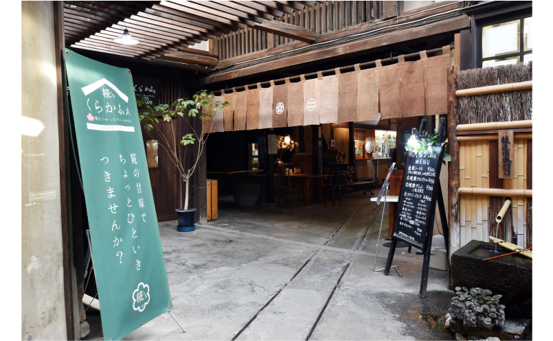 くらかふぇ糀’sは山梨銘醸「七賢」酒蔵の中にあるカフェ。糀を長く扱ってきた酒蔵だからこそ作れる、自然由来の甘味料「糀糖」を使ったスイーツやドリンクを楽しめる。