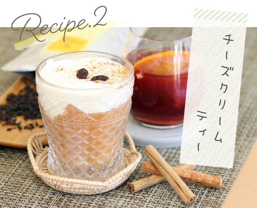 ドライフルーツのような甘い香りが特徴の「アッサム」。力強い渋みと旨味を楽しめるアッサムはミルクやクリームとの相性が抜群。近頃新しいトレンドとして注目されているチーズホイップをのせたチーズクリームティーを濃厚なアッサム紅茶とあわせてご紹介。