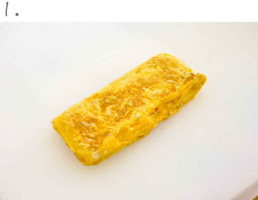 調味料Aを混ぜ合わせ、サラダ油を敷いたフライパンで厚焼き玉子状に焼く。