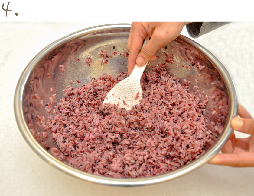 ※手酢(水・酢を同割で合わせたもの)に手を浸してから作業するとくっつきにくい