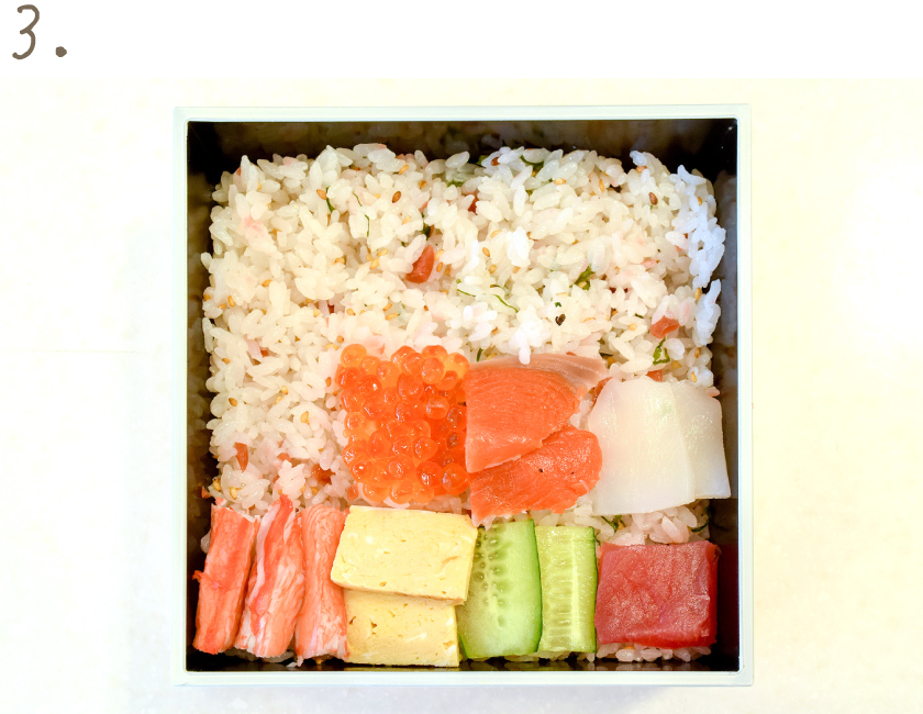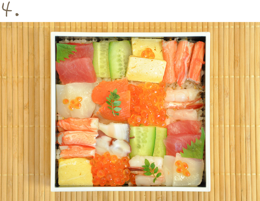 カラフルなネタが格子状に敷き詰められたモザイク寿司。キレイでかわいいとSNSを中心に話題のメニュー。お正月やホームパーティーでぜひ作ってみてください♡