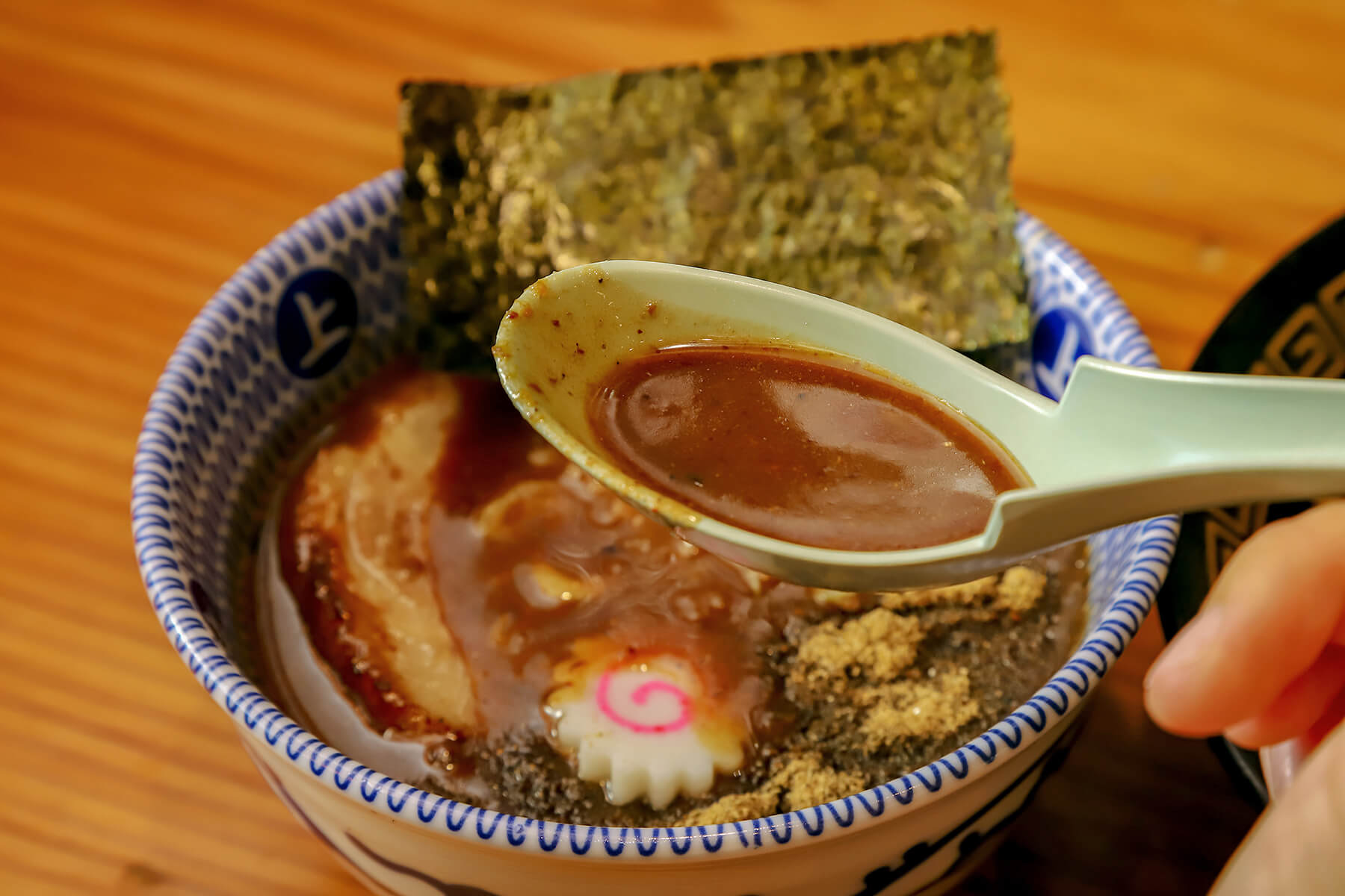 動物系と魚介系を融合させたスープは、どろっと粘度が高く魚介でガツンと来るのに、動物系によって、まろやかな味わいだ。
