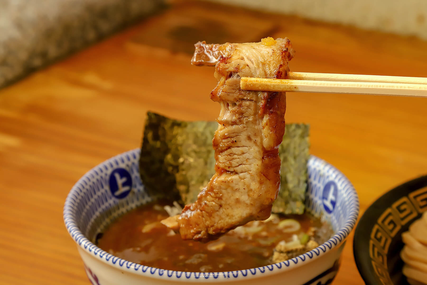 炙り桃源ポークのチャーシューは、ホロっとろっ食感で口の中へととろけていく。