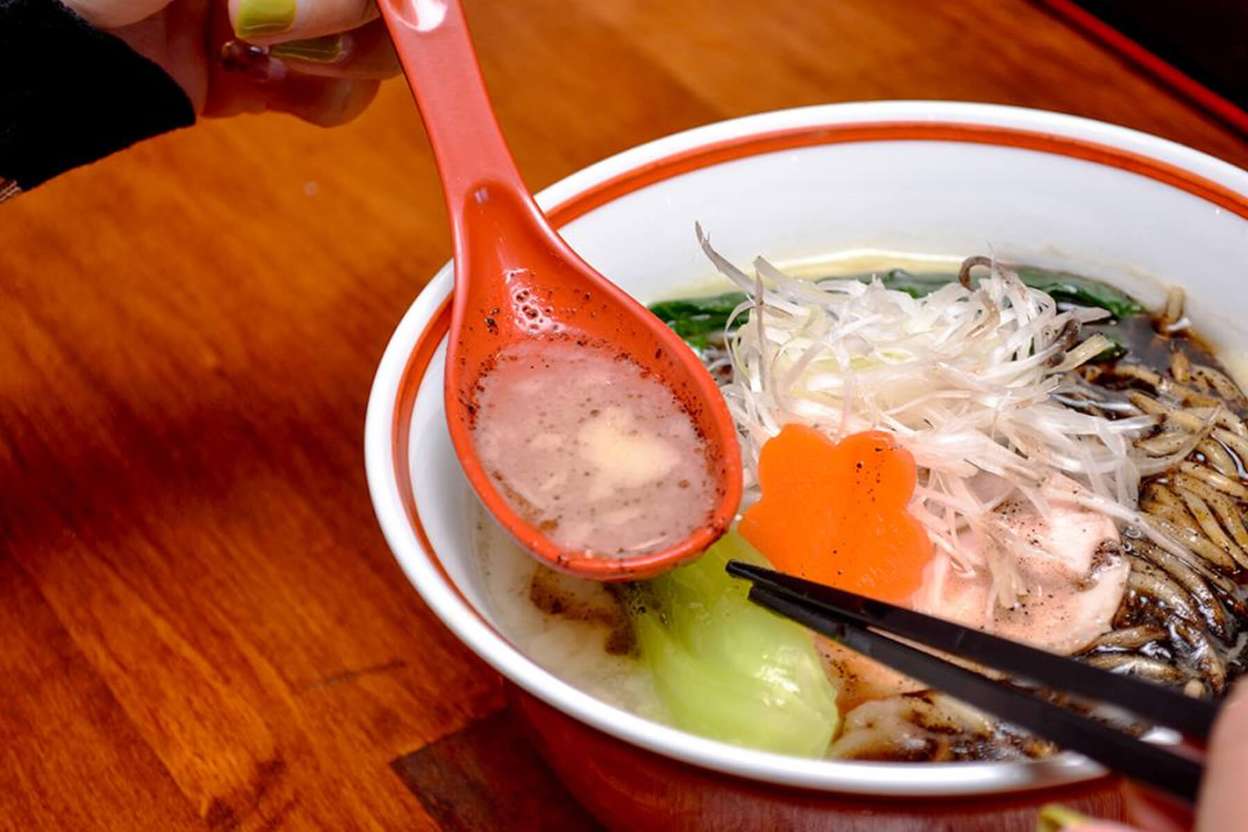 鶏の出汁が凝縮した白濁スープに、焦がしニンニク香る真っ黒なスープがミックス。