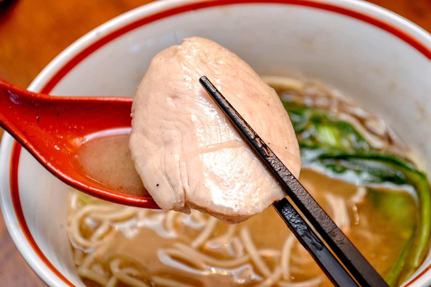 チャーシューはしっとりやわらかい鶏むね肉で、こちらもとてもヘルシーで美味い。