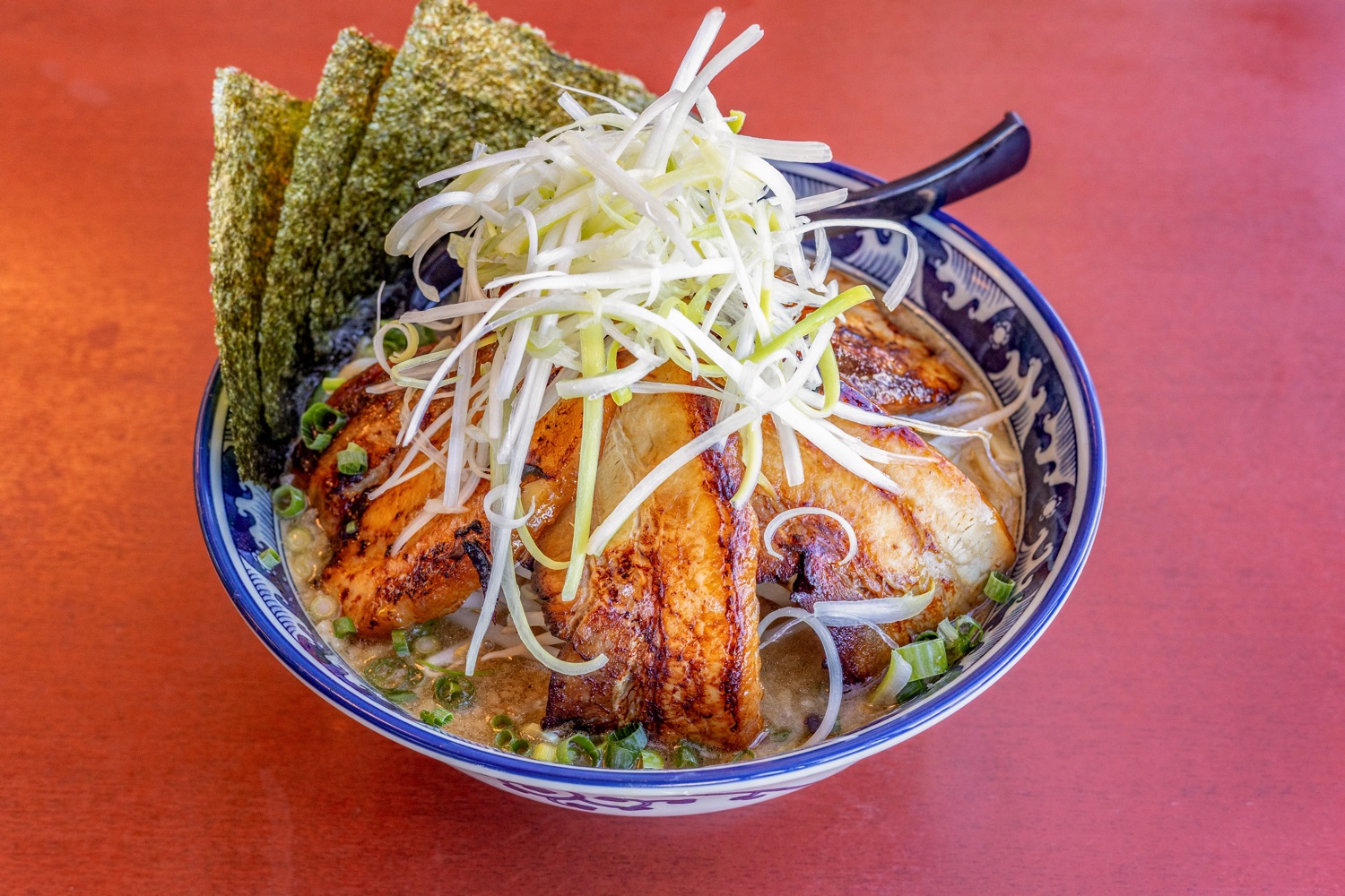 炙りチャーシュー5枚、メンマ、ネギ、海苔、もやし
