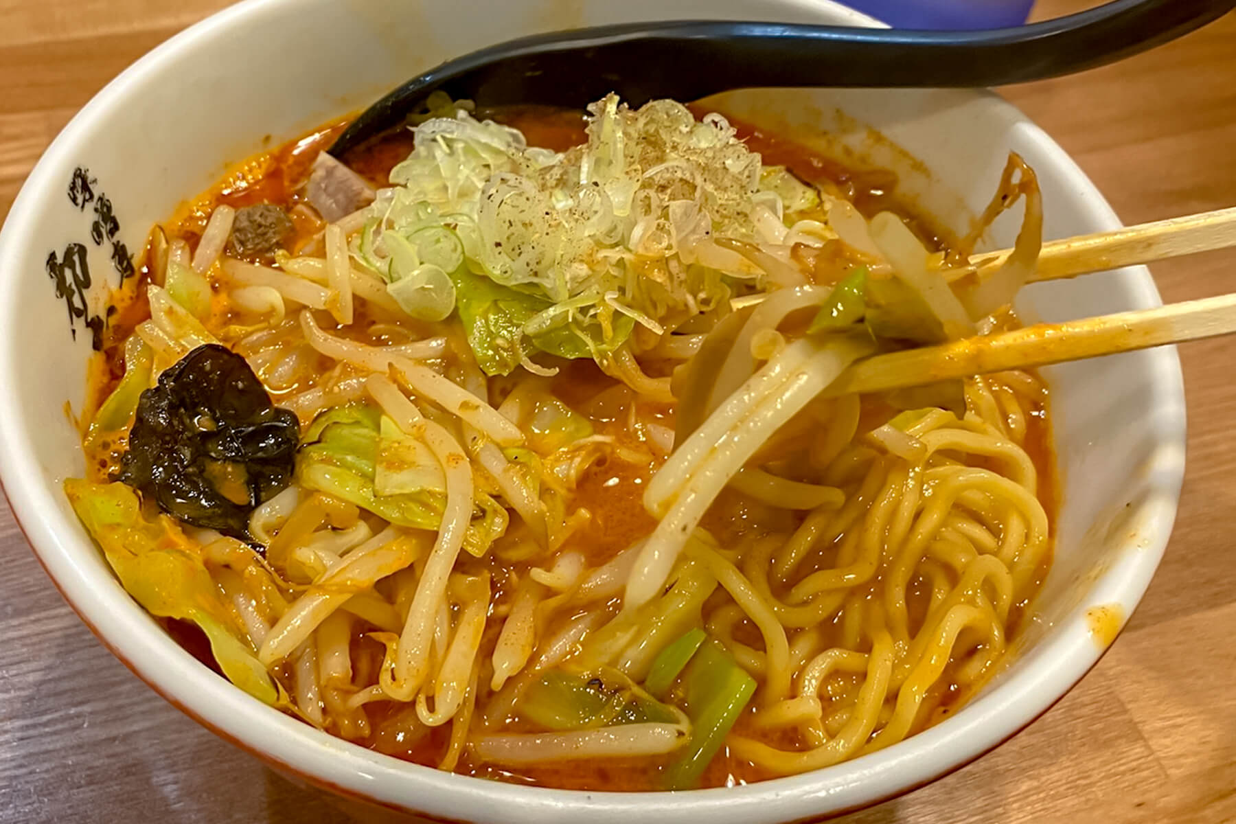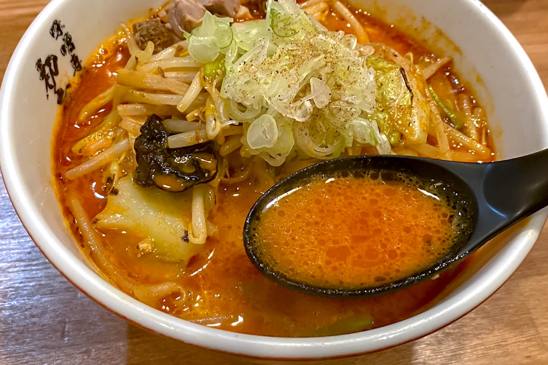 蓮華でスープを口に運ぶと、ファーストインパクトは味噌のまろやかさ。