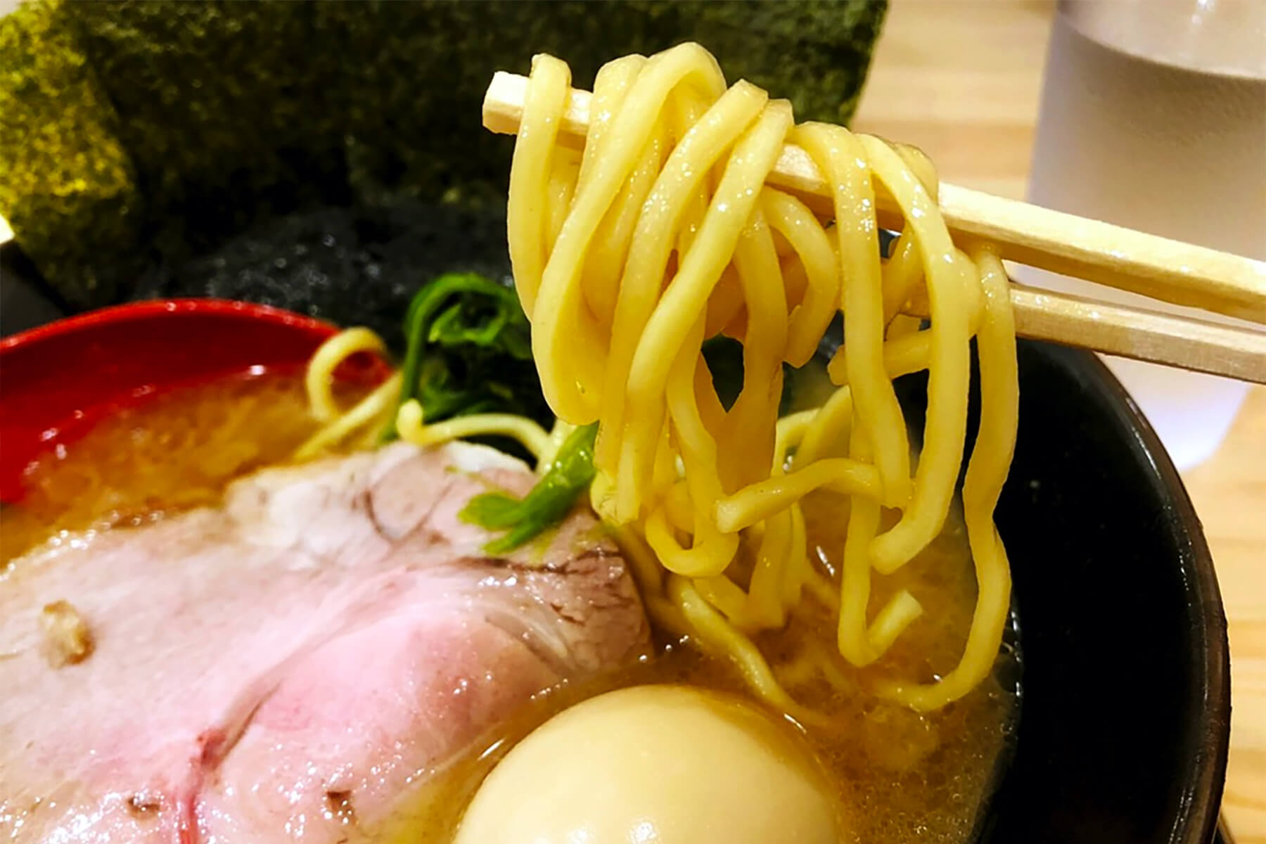 麺は、村上朝日製麺所と共同開発したオリジナル麺とのこと。特別中太麺でもっちり、食べやすい。